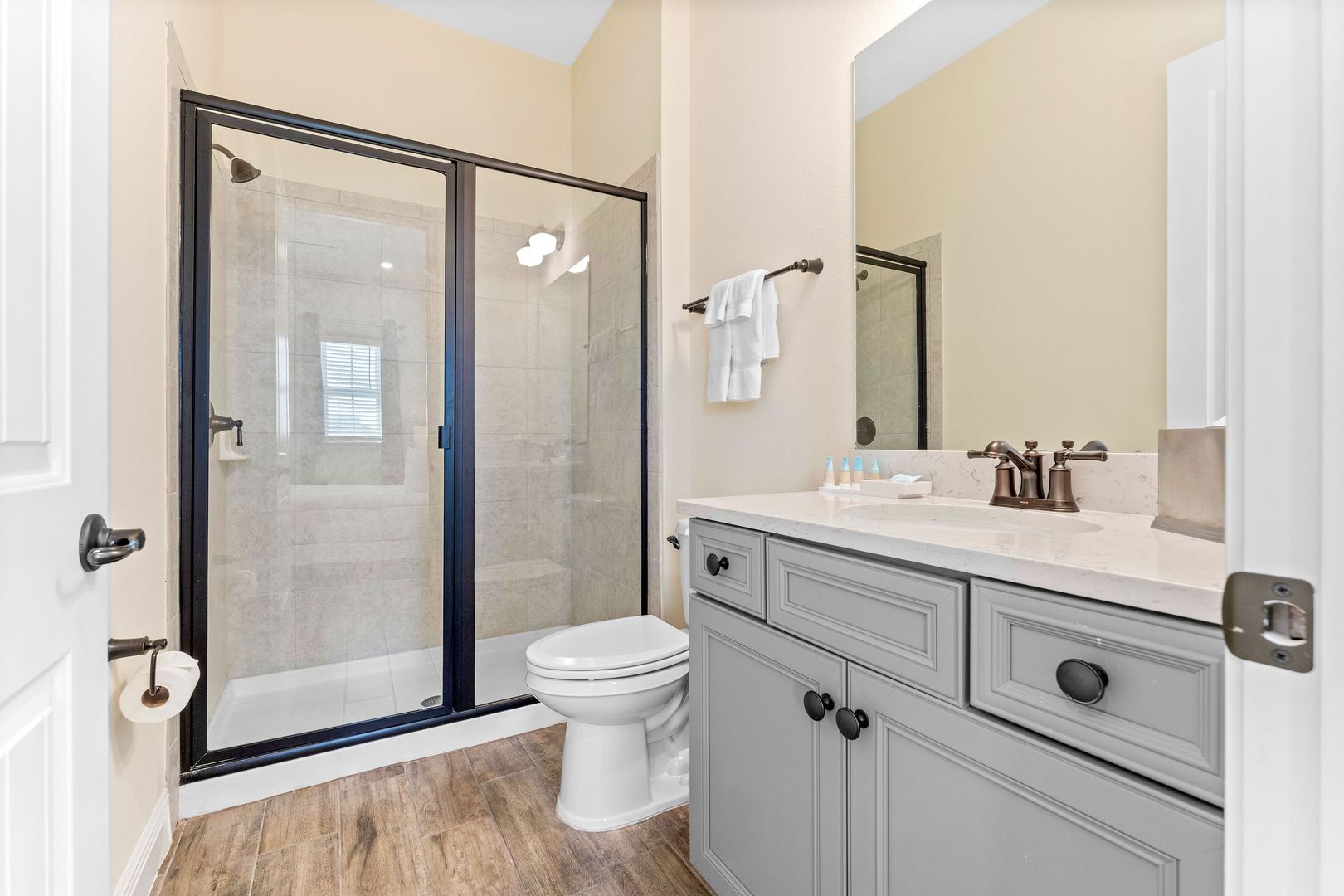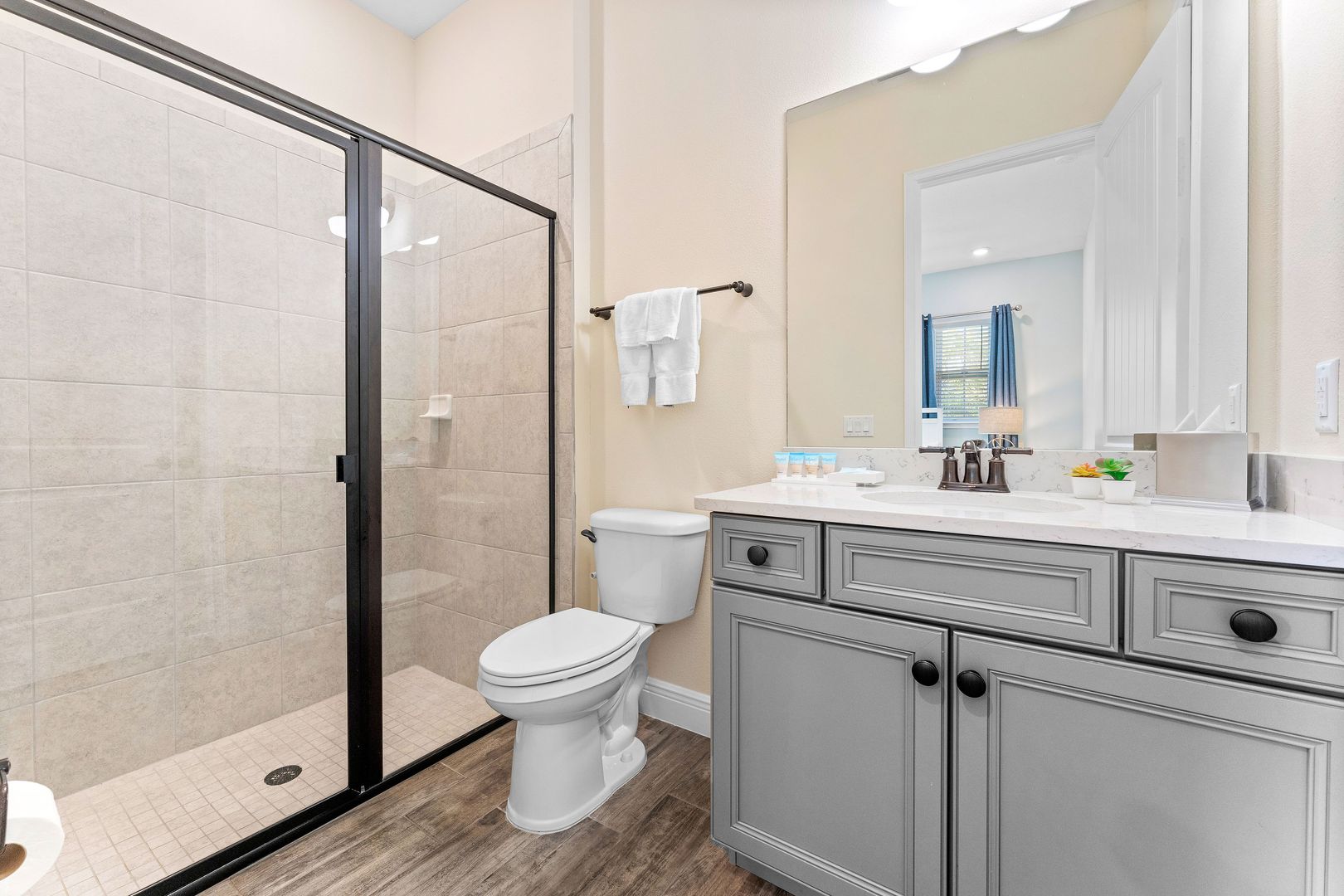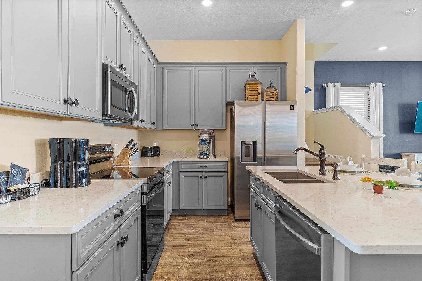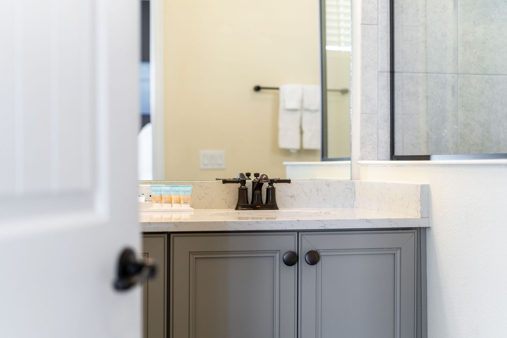 Welcome to Laffite’s Landing, a beautifully furnished waterfront cottage in the heart of Margaritaville Resort Orlando. This 3-bedroom, 3-bath home comes with the official Margaritaville furniture package. The two-story layout is both comfortable and functional. The main floor features one bedroom and a full bath, ideal for guests, while upstairs offers two additional bedrooms, each with its own private bathroom.