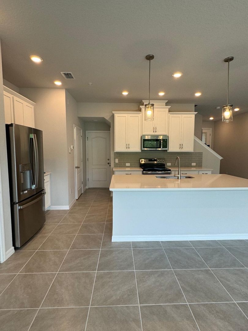 Move in Ready This beautiful brand new townhome in David Weekly Homes Astera community. Featuring 3 bedrooms and 2.5 bathrooms, you'll love the open concept living space this townhome offers.Situated in the heart of Lake Mary, FL, within the Lake Mary Wellness & Technology Park. Minutes from I-4. Excellent Seminole county schools in the neighborhood. Located across from shopping, restaurants and businesses. Tiled dowstaris. Open kitchen concept that flows into the family room and continues to the nook. The kitchen features an oversized island with seating area, quartz countertops, 42" wood cabinets, all new stainless steel GE appliances and a pantry. The home comes with two attached garage and extra large driveway to park another 2 cars. Lawn maintenance is included. Community dog park.