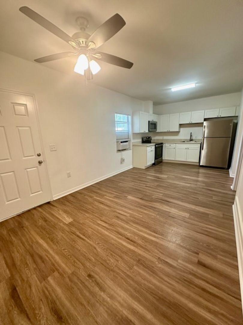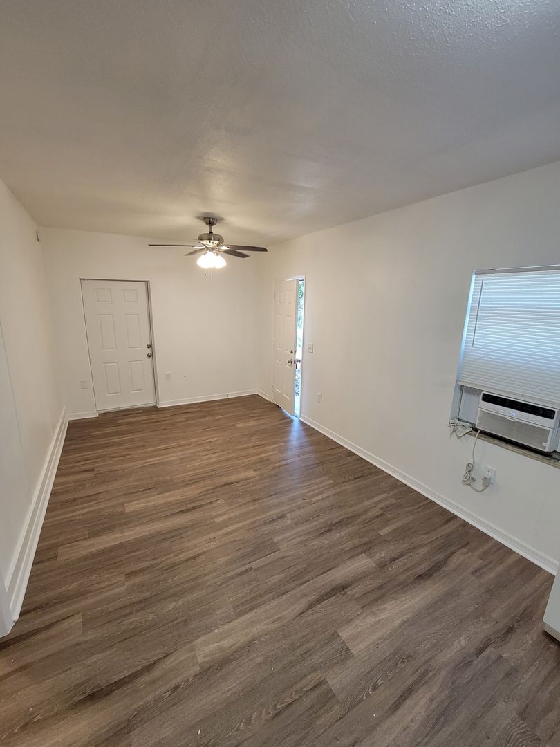Newly renovated 1 bedroom 1 bath efficiency that has been renovated. New kitchen, bathroom and flooring, ready to move in. This unit also features a huge yard space with lots of shade and LAWN CARE IS INCLUDED!